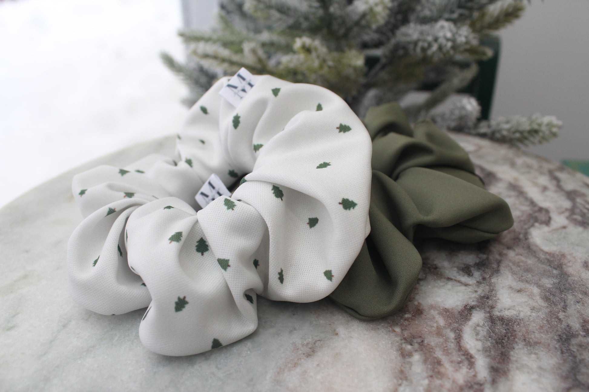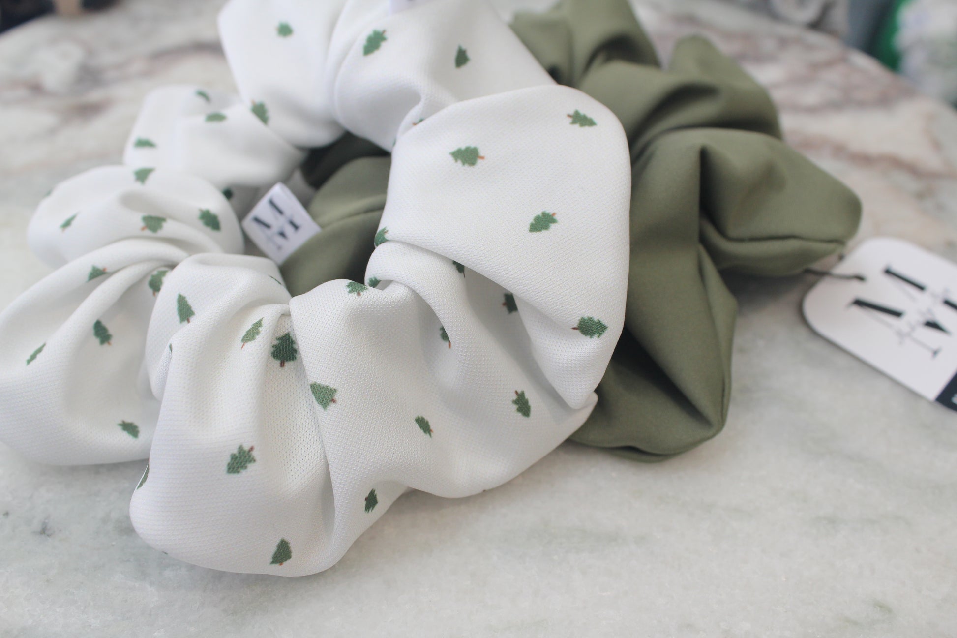 Made with an incredibly lightweight performance material, this subtle tiny tree design pairs perfectly with the Deep Sage scrunchie from the Repreve collection.